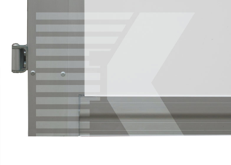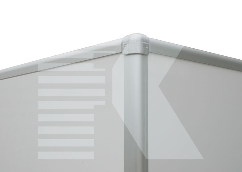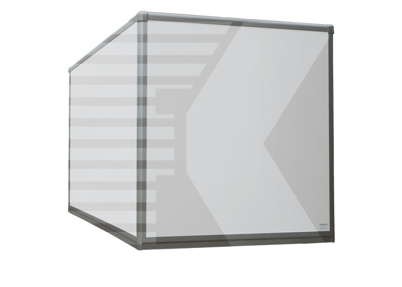 Pannello: profili perimetrali estrusi in alluminio, pannello sandwich VTR-PET o POLISTIRENE-VTR da 17mm con rinforzi trasversali in alluminio.